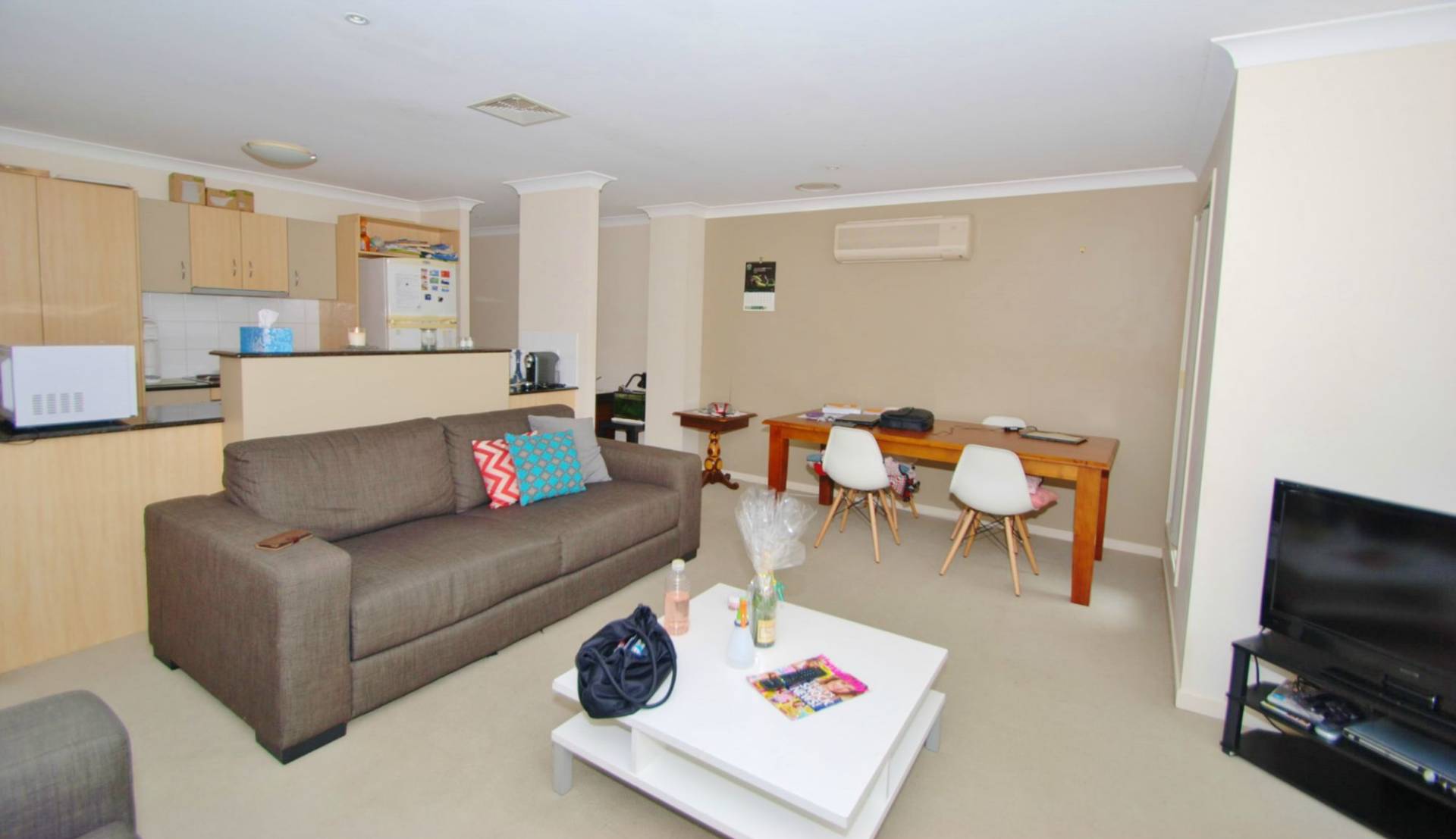3 bedroom townhouse with open plan lounge and dining, good sized kitchen with ample bench space. 3 very generous bedrooms with ensuite to master, second bathroom and guest powder room downstairs as well as double garage. A little paint and carpets is all that's needed and vacant possession is offered.