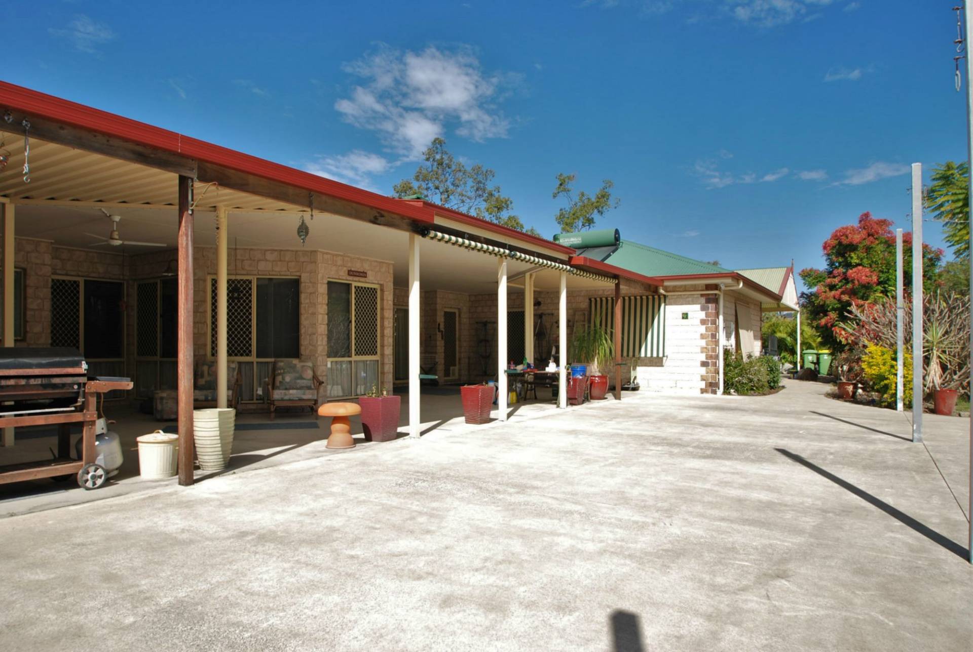 Set on 5027m2 of private rural ambience this steel framed 4 bedroom home offers plenty of space for the large family, dual living arrangement or home business. The private entrance to a massive room with kitchen sink would be suitable for a home business or separate accommodation. Plenty of parking options are available with 5 large carport spaces, double garage plus workshop. There is also a home office with its own entrance. The large undercover outdoor entertaining area has views of the saltwater swimming pool and bushland setting.