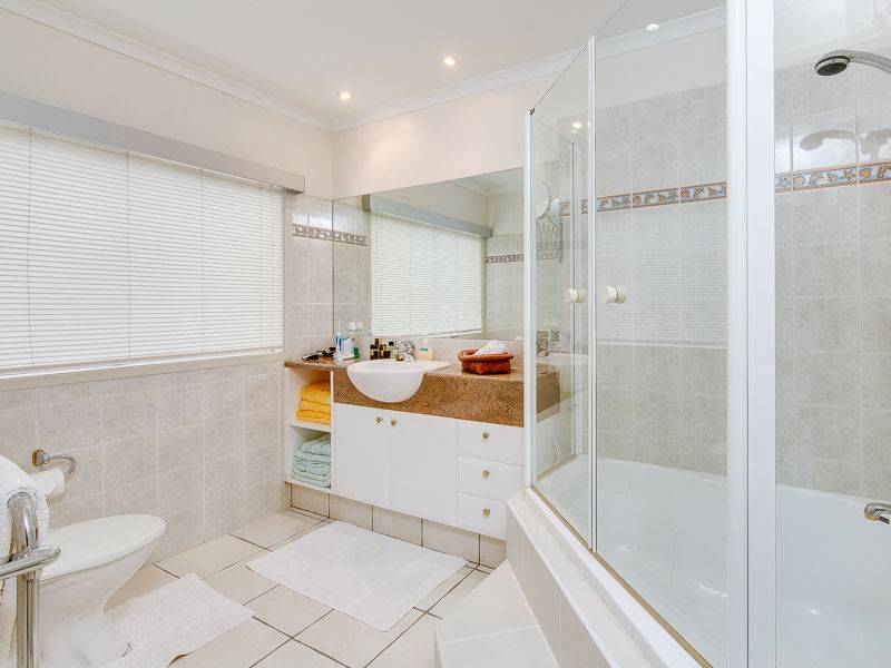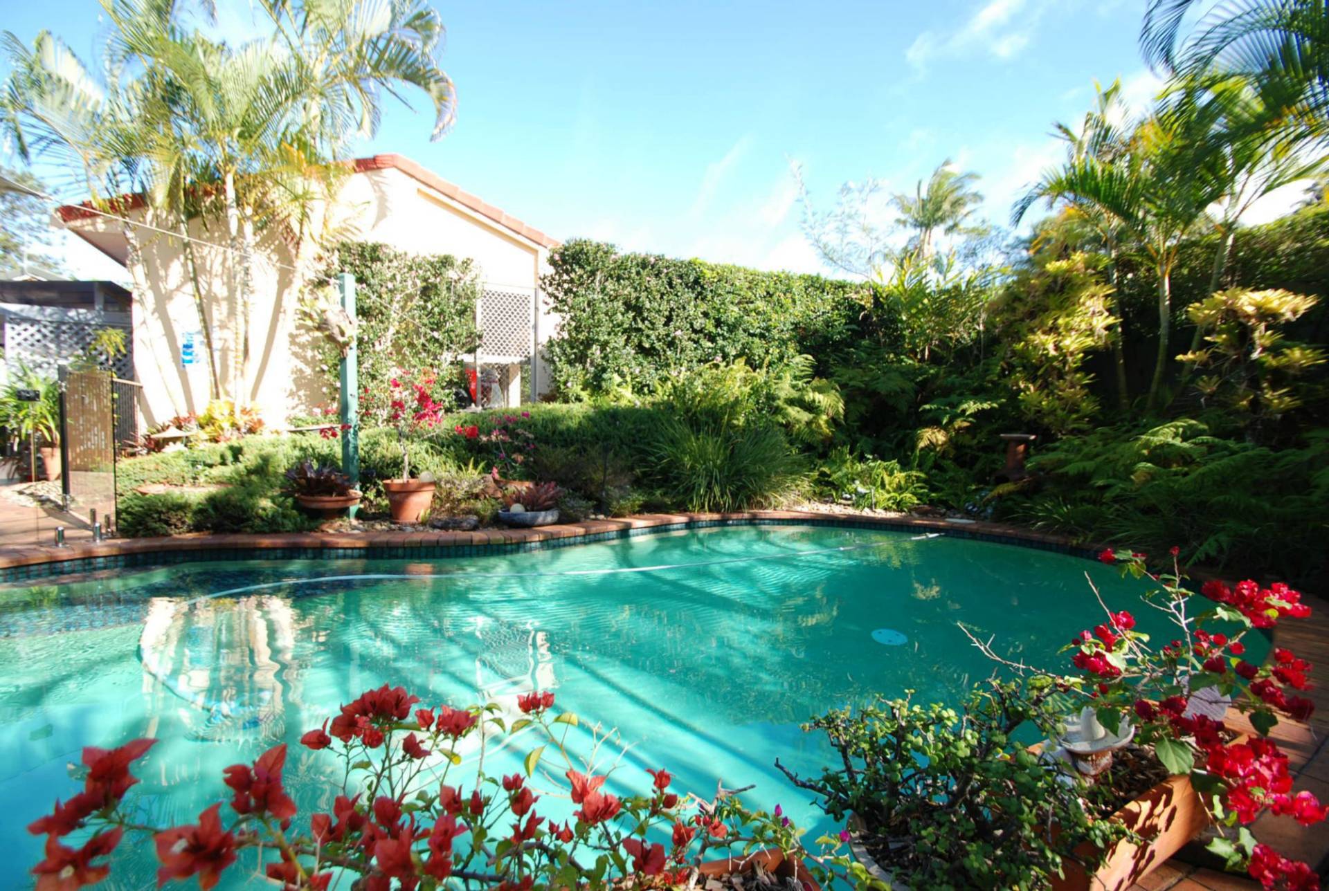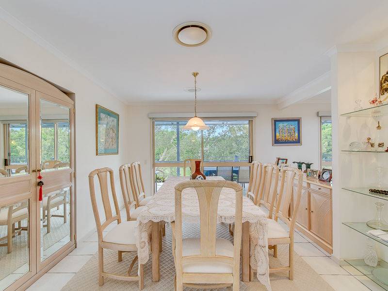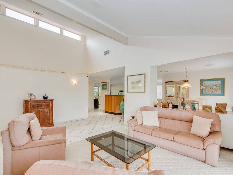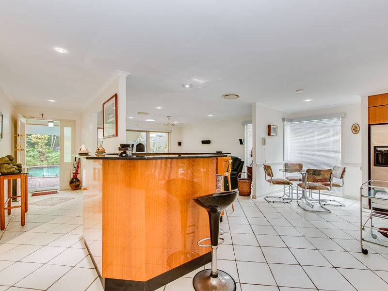 Overlooking the Robina Woods golf course, this is a warm and welcoming home that offers five bedrooms on two levels with  true dual living. Main residence has three double bedrooms, all with ceiling fans, separate formal lounge and dining and a large family plus casual meals area, where every room enjoys either pool or golf course views. The kitchen and matching wet bar are of polished timber with granite tops , ample cupboard space and gas appliances and while a beautiful cross breeze is always present, ducted air conditioning is available for the warmest days.