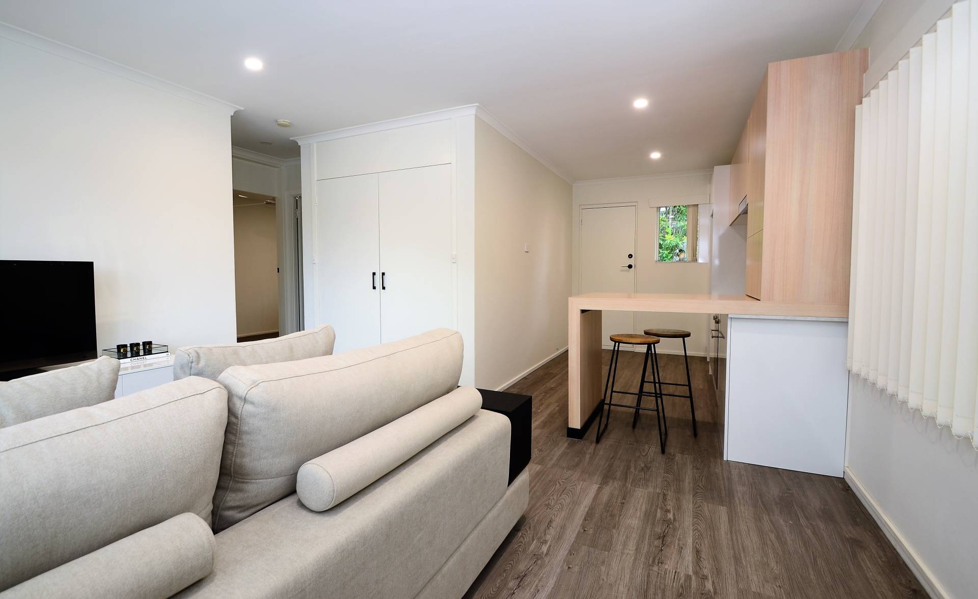 Beautifully renovated unit. New carpet, paint, stunning bathroom and cleverly designed, remodelled kitchen with eatery bench/bar-stools, boasting new stainless steel appliances and heaps of storage/cupboard space.