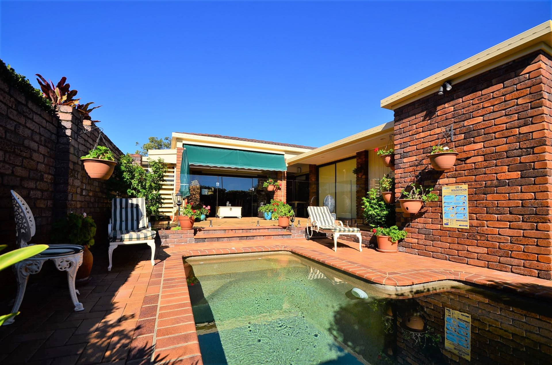 Generous and elegant living rooms adjoin a  revamped kitchen with ample bench space and heaps of cupboards, while you will revel in the al fresco lifestyle afforded by  the custom built outdoor entertaining area overlooking a lovely pool, discreetly hidden behind the privacy of a secure fence. Apart from the double garage, there are loads of outdoor storage cupboards and an undercover washing line.