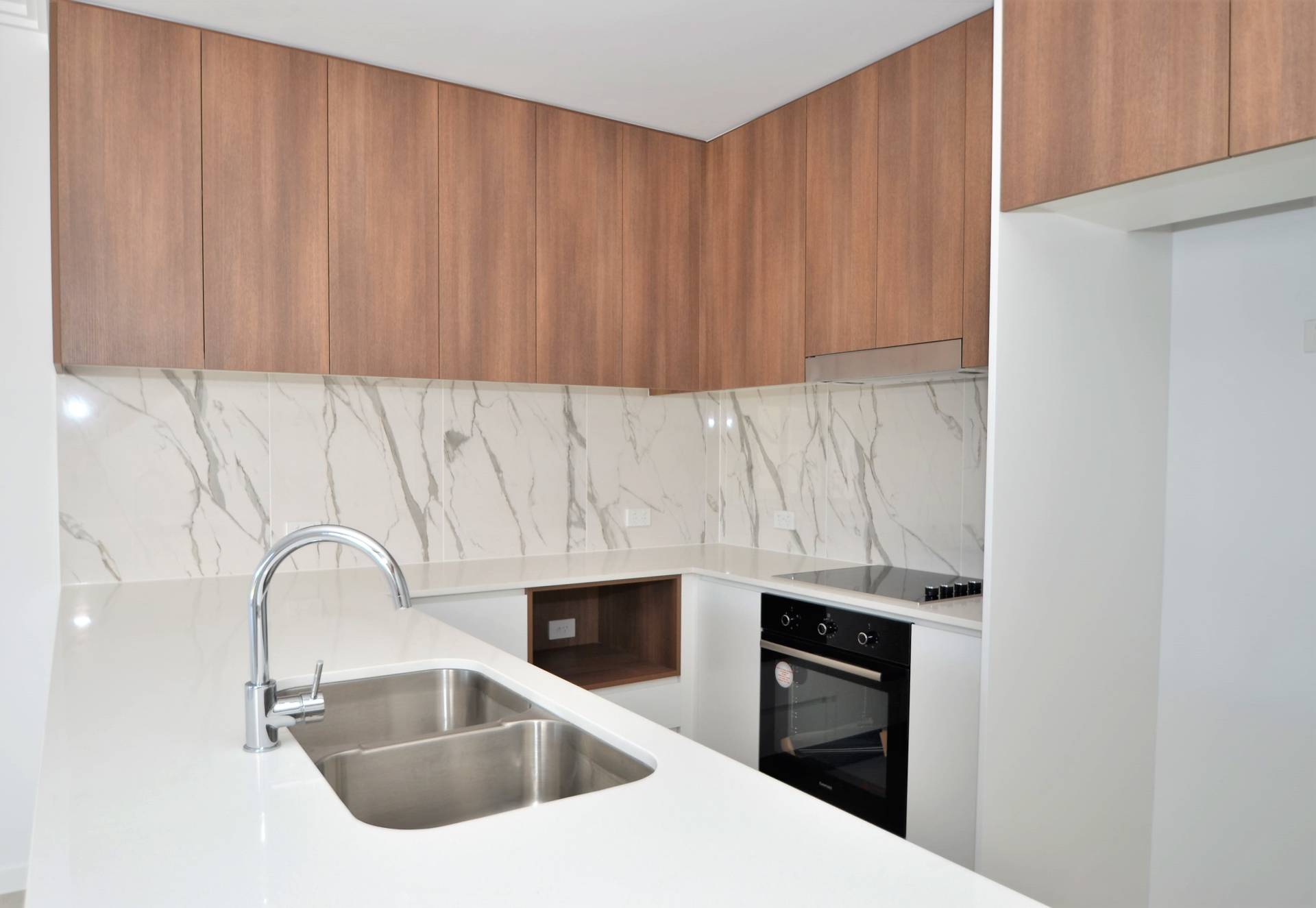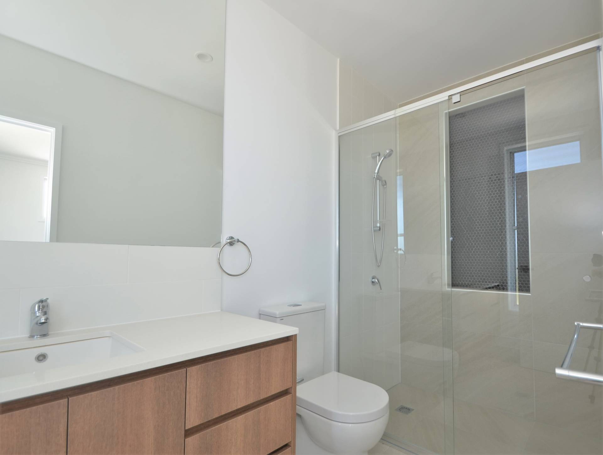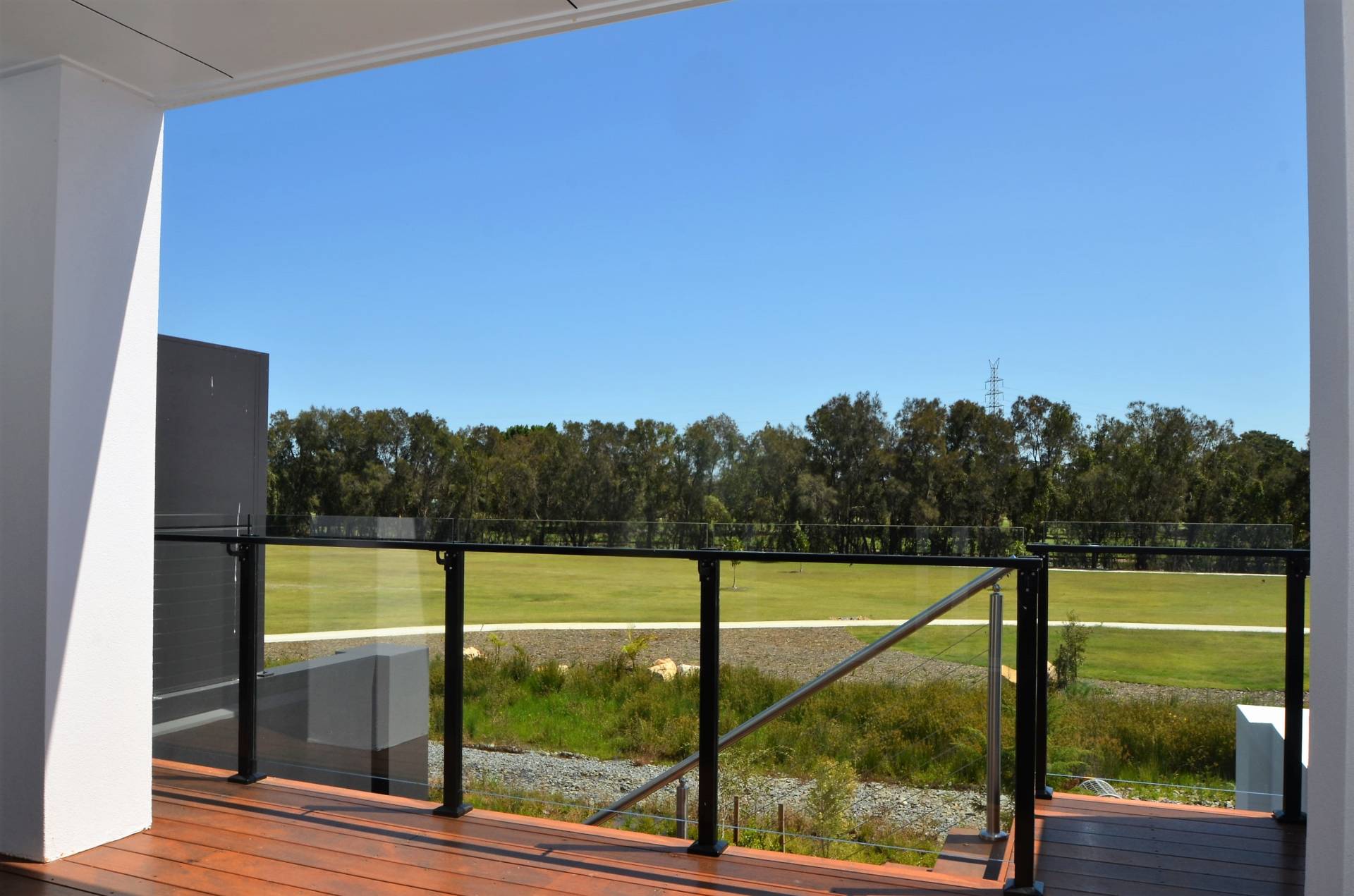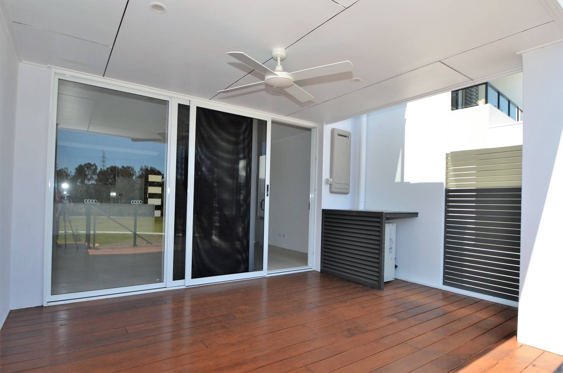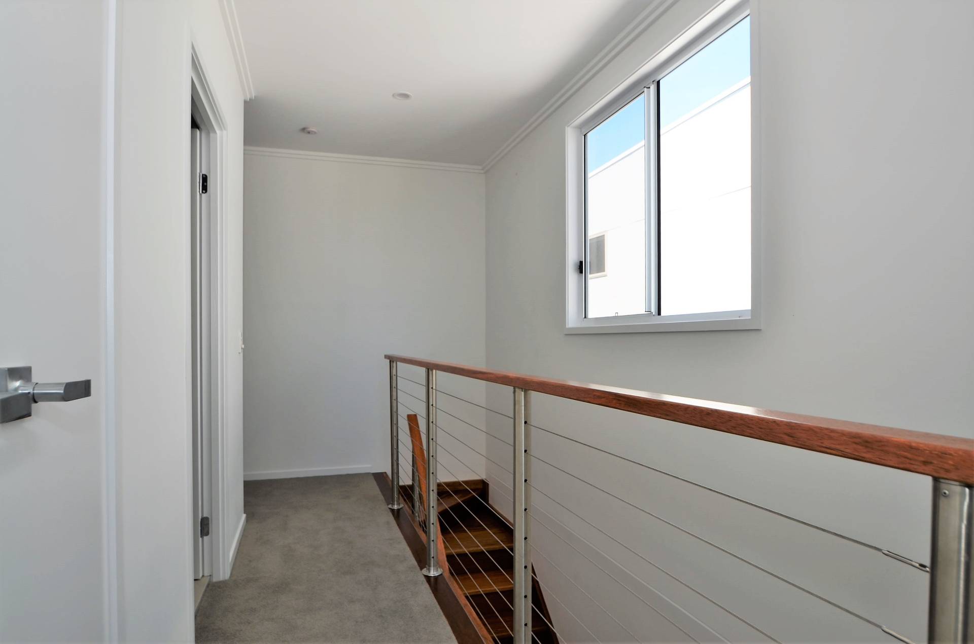 Downstairs offers 9ft ceilings over a spacious air-conditioned, open plan living flowing to a large undercover timber decked patio overlooking green space that can never be built out.  Generous kitchen with Caesar stone bench tops, ample cupboard space and stainless steel appliances, plus downstairs powder room.