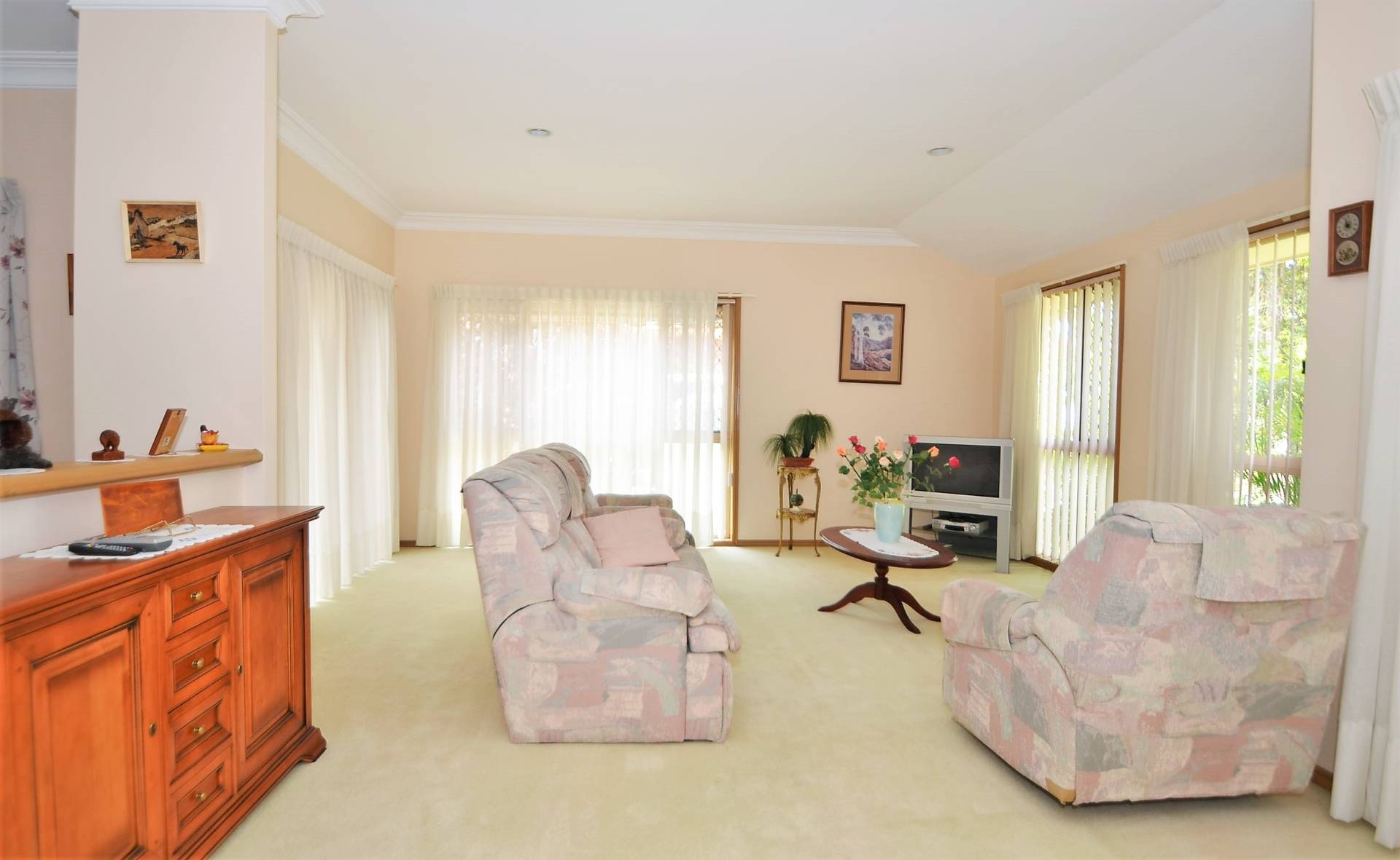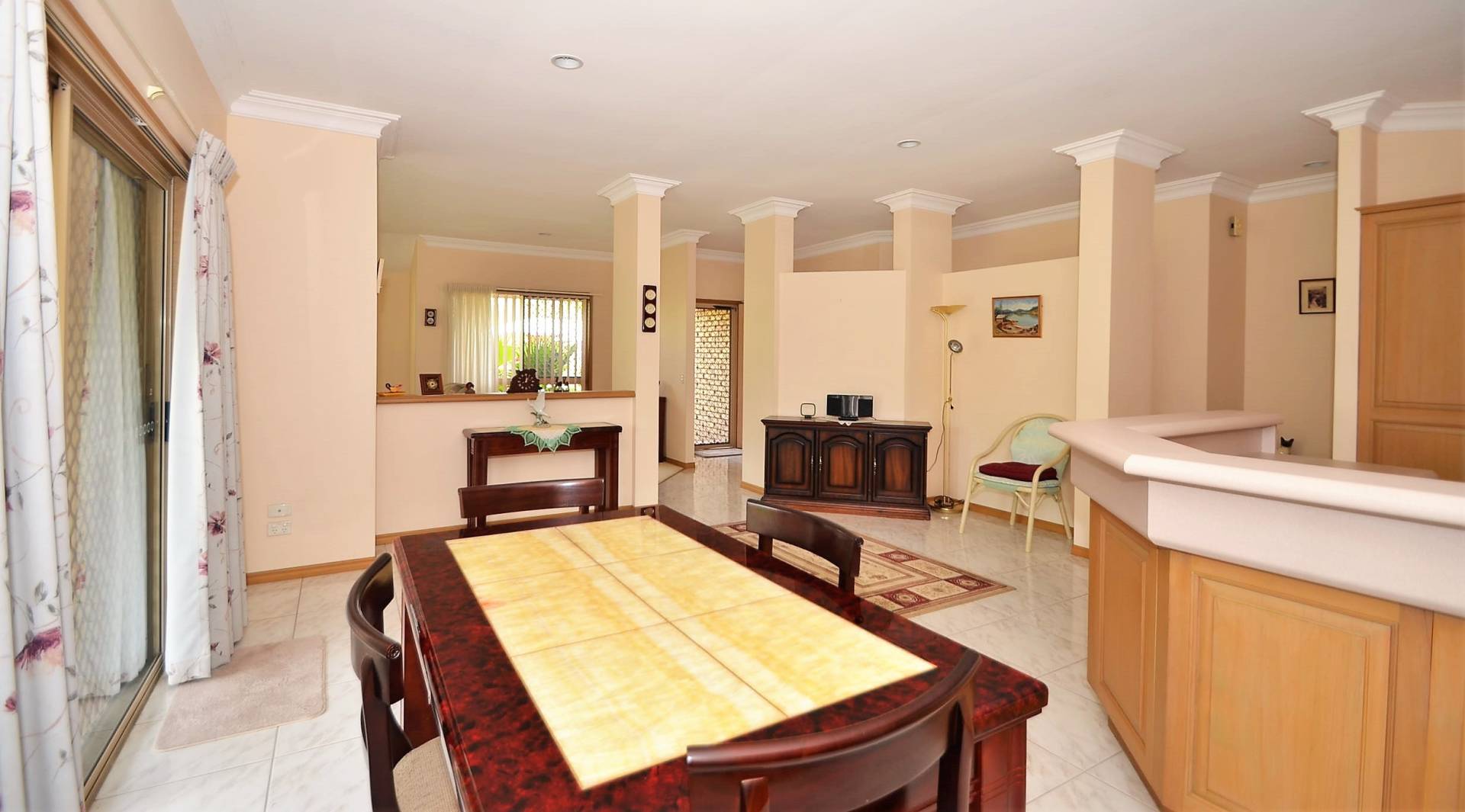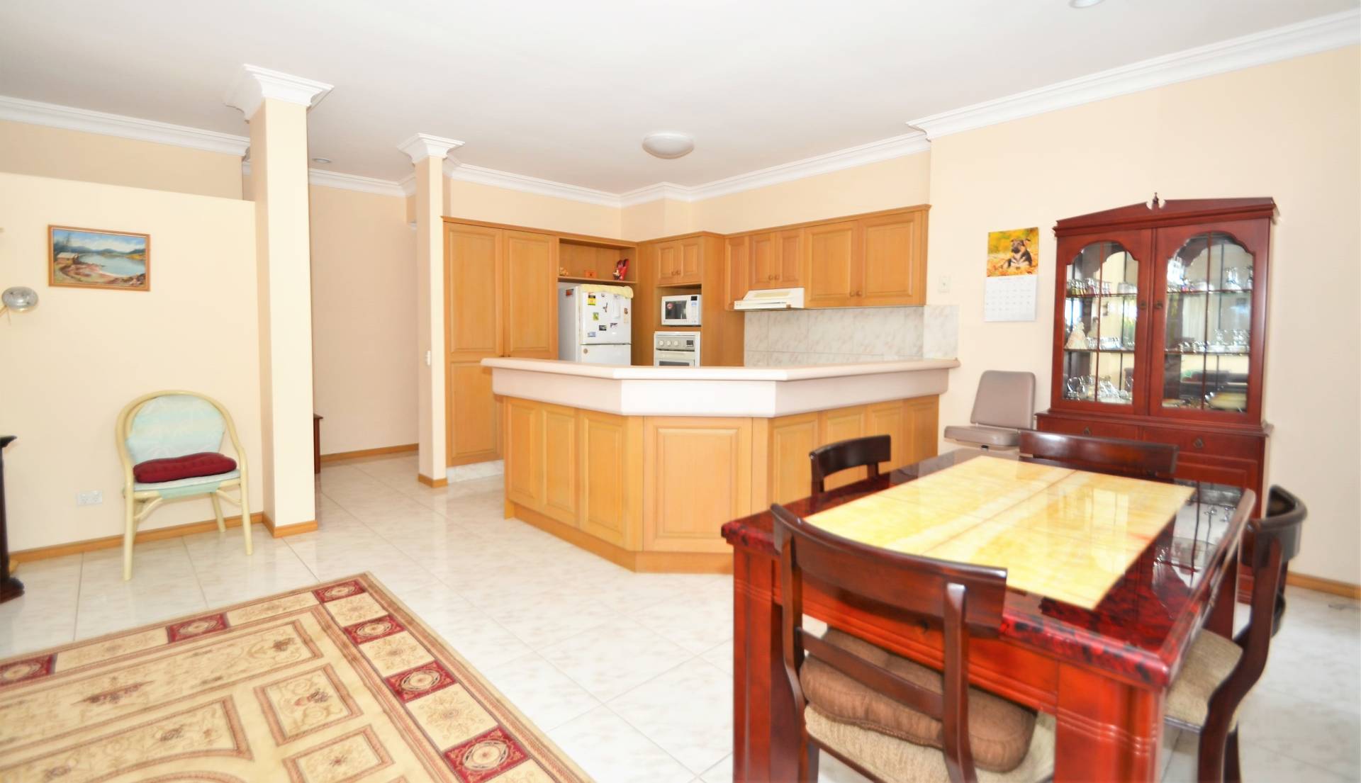 Mirrored entry foyer leads to a spacious,  light and bright lounge room which flows to  separate tiled dining/family area with a large reverse cycle split system air conditioner.
