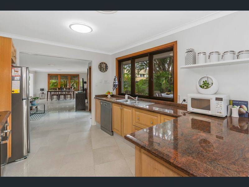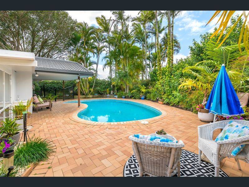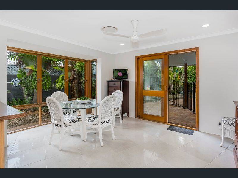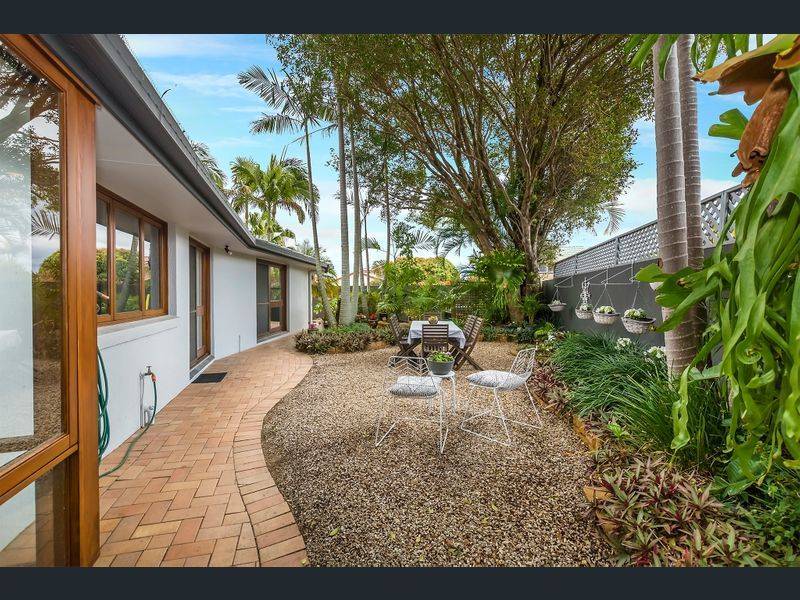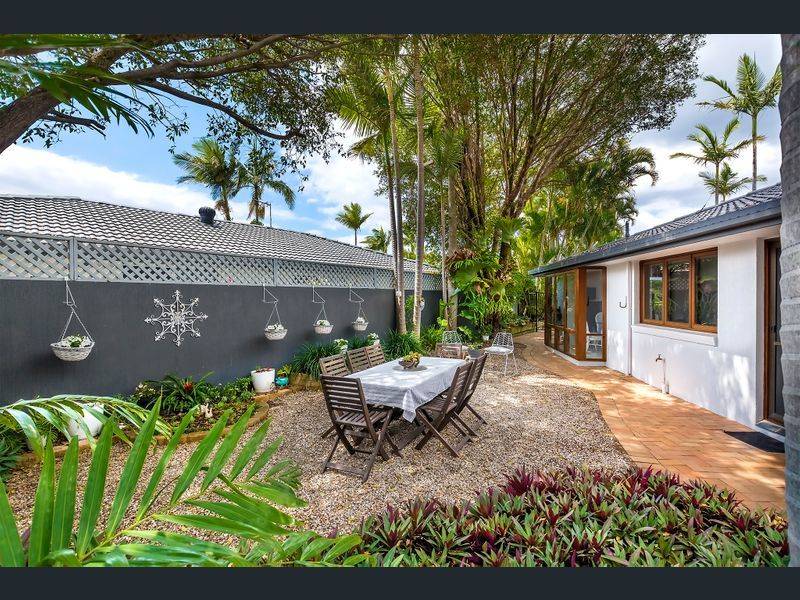 Set in a leafy, tropical garden, the open plan design boasts three bedrooms, two bathrooms and seamless living with intergrated lounge and dining areas separated by a light and bright kitchen with stone benchtops, heaps of cupboard and pantry space and stainless steel appliances.