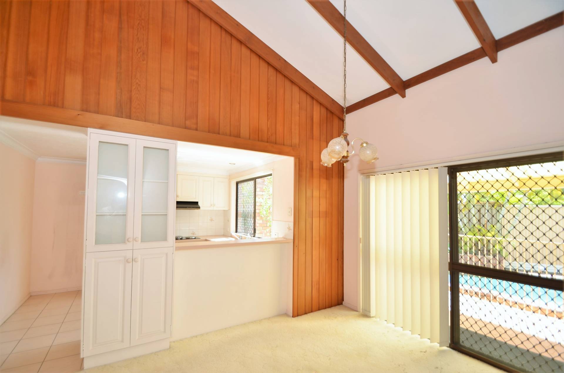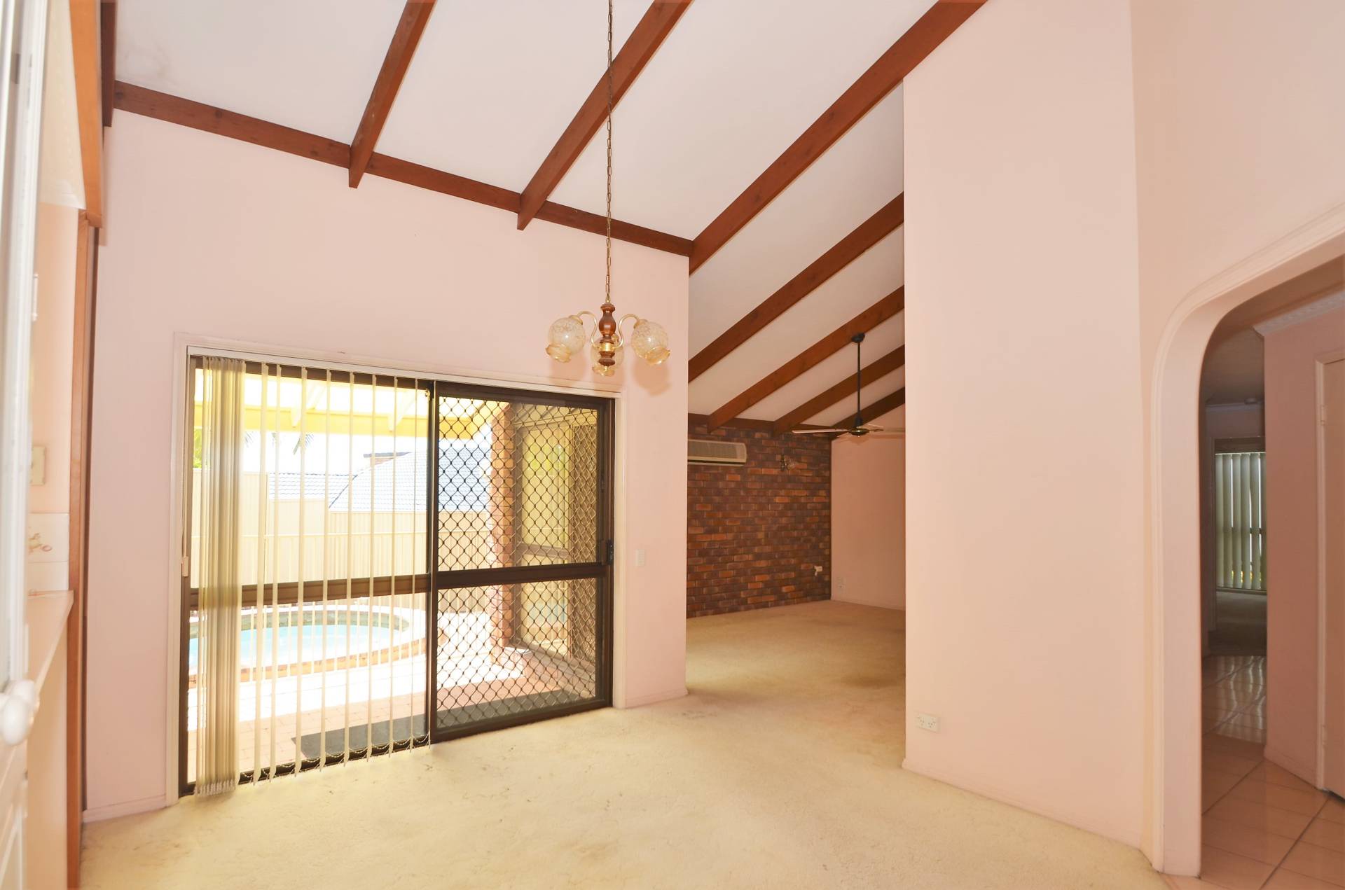 With raked ceilings and exposed timber beams over both living areas, the good sized kitchen adjoins the generous dining room which in turn, leads to the pool and outdoor entertaining.