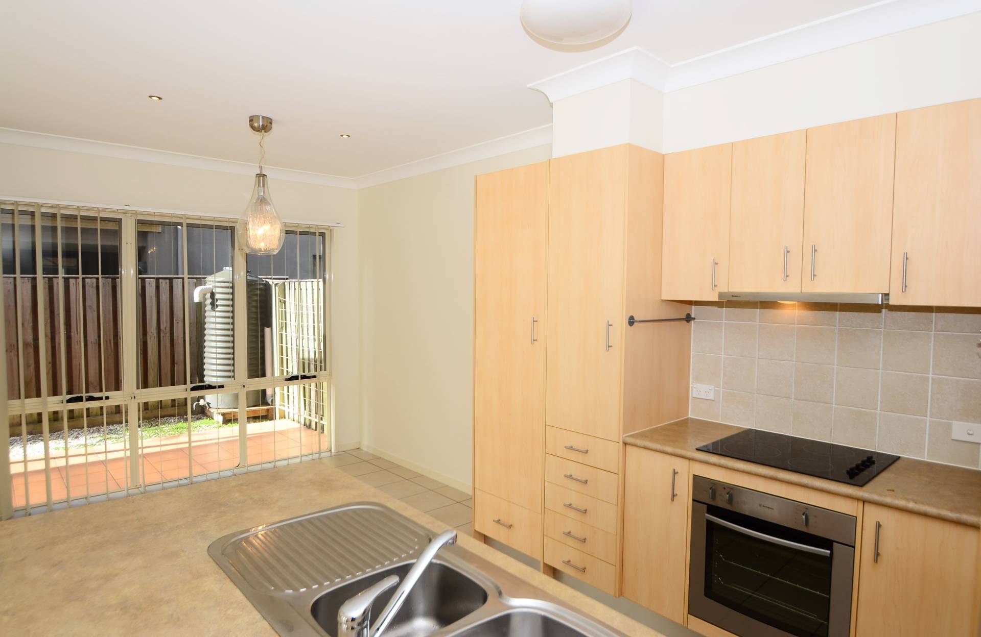 Architecturally designed townhouse, in a small block of only four, in a quiet street, only minutes from Varsity station and 3 minutes to Robina Town Centre.  Light and bright, air conditioned, tiled living areas with good sized kitchen offering ample bench space and stainless steel appliances and a convenient powder room/3rd toilet.