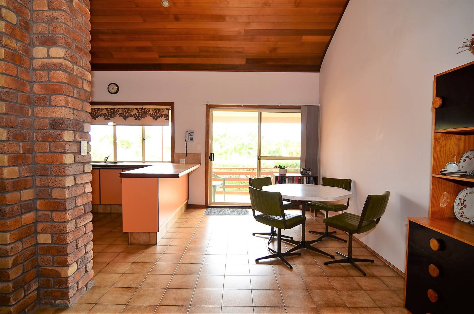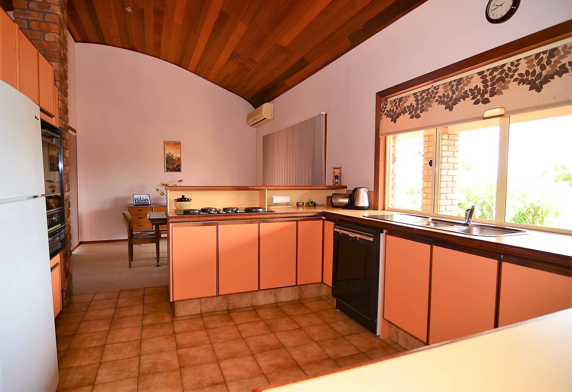 The spacious kitchen accesses all living areas and offers ample bench space and plenty of cupboards.