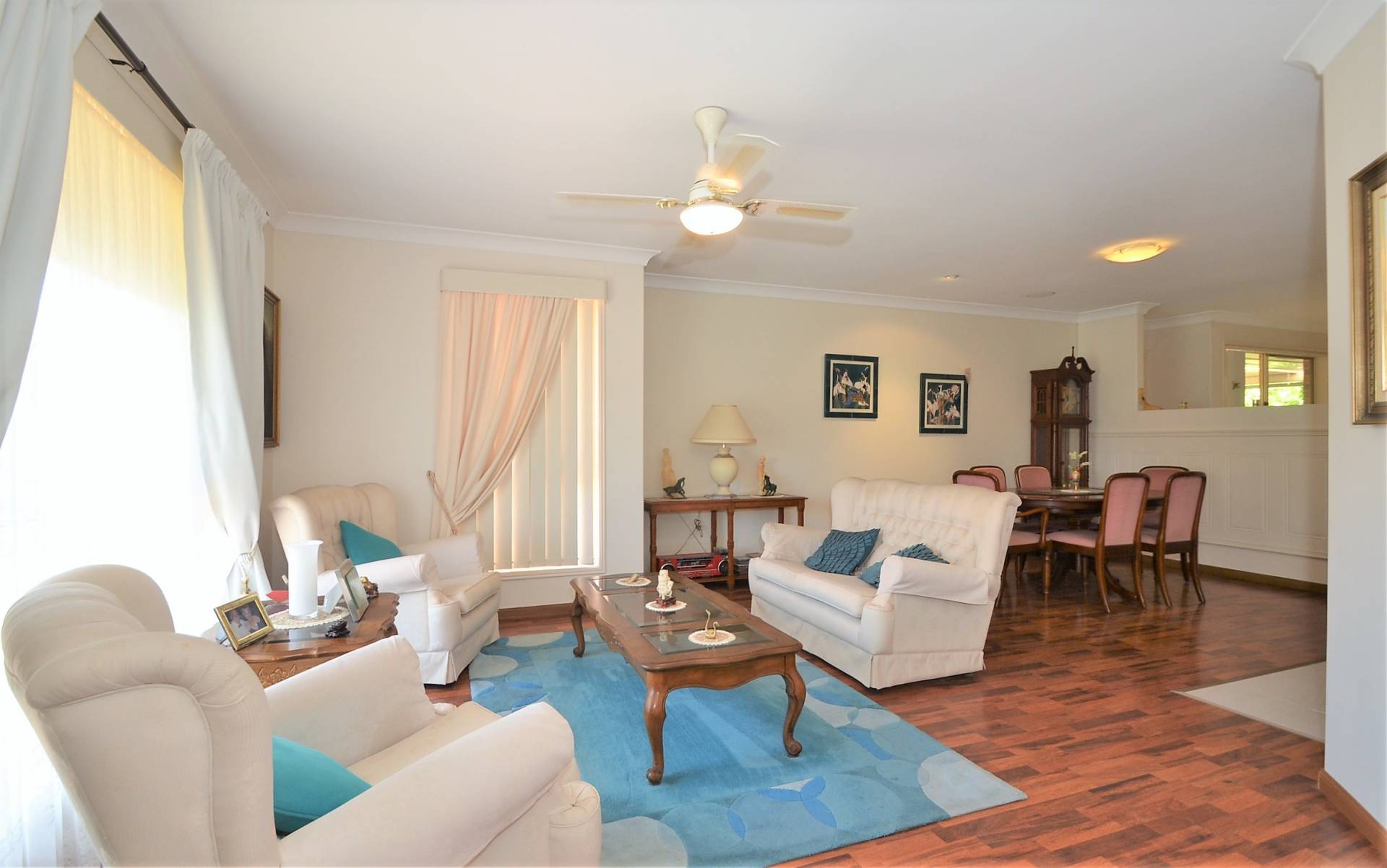 You won't find a better value home than than this original, but spotless home adjoining reserve and with only one neighbour.  Vinyl timber floors in lounge and dining, with separate family room plus a casual meals area. Central kitchen with plenty of bench space, cupboards and dishwasher.  Three  double bedrooms with walk in robe and ensuite to master and large main bathrooom and separate toilet to service the uesat rooms. The 4th bedroom currently used as an office, also has a wardrobe and  will easily take a double bed