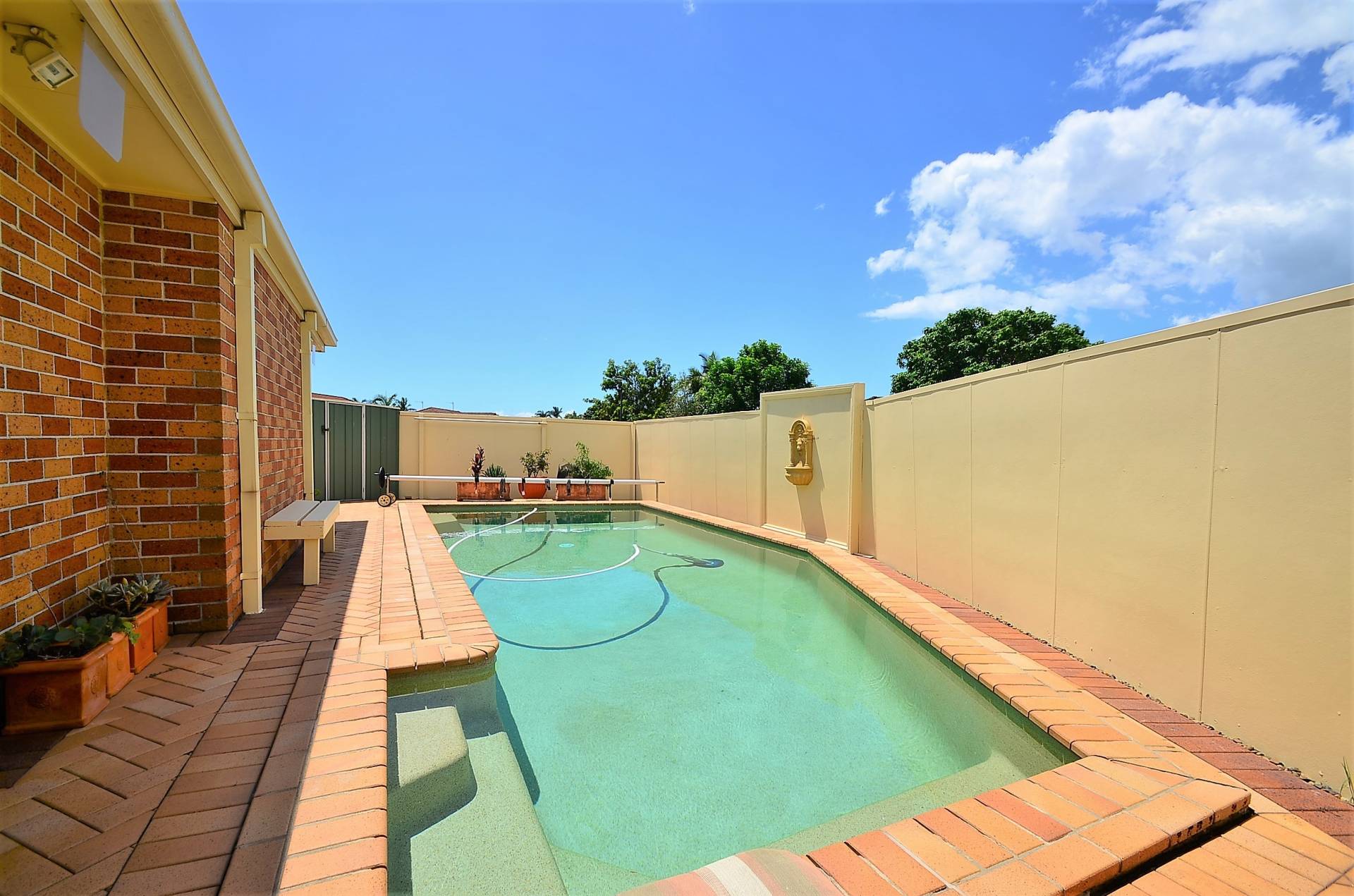 Outside there is complete privacy with  a low maintenance garden and a  very large paved  undercover entertainment area adjacent  to a sparkling spa pool.  Large water tank, good sized tool shed and double garage providing internal entry and good sized block in a quiet street.
