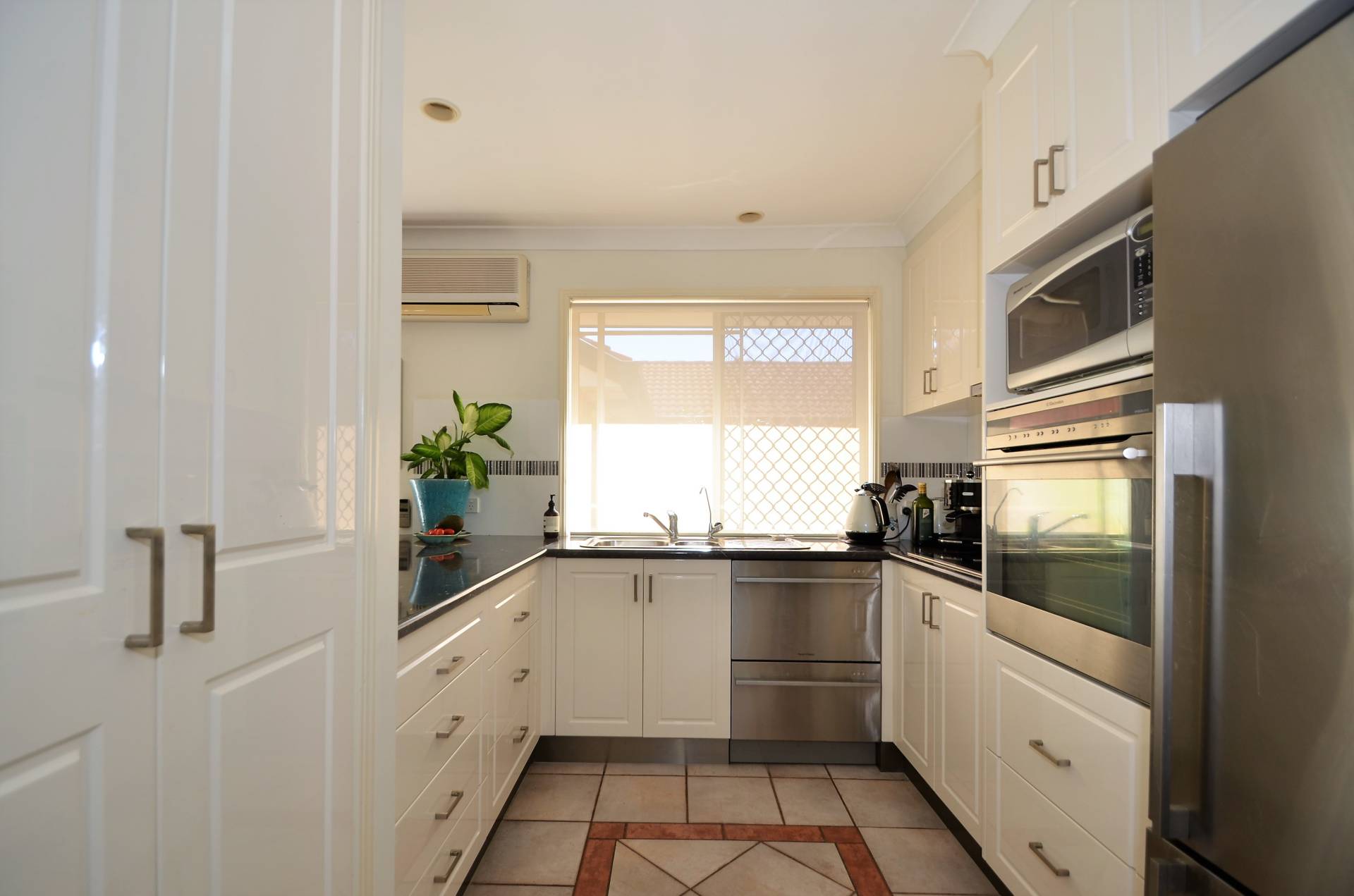 Exceedingly spacious living areas has the dining room with built-in display cabinet adjoining the generous kitchen offering ample bench space, heaps of cupboards, a pyrolytic oven and twin drawer dishwasher. while the light and bright air-conditioned lounge room flows gently to an exceptionally private under cover area and low maintenance garden (with the best pomelo tree you'll ever see.