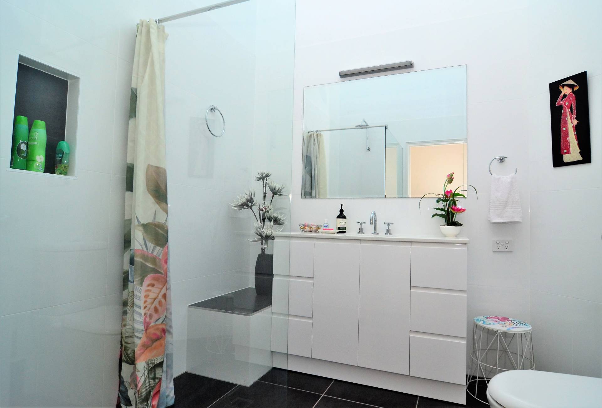 The main living area offers ample lounge and dining options where a spacious kitchen with caesar stone benchtops and heaps of cupboards overlook the fabulous deck area where you will love to enjoy a wine in the company of the resident swans, ducks, water dragons and turtles!