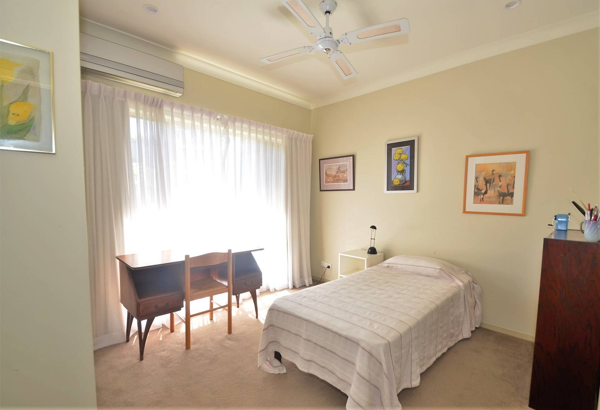 On a corner block with low maintenance gardens, this is a good sized three bedroom plus study  home with large walk in and ensuite to main bedroom. strategically situated away from the two double guest bedrooms and main bathroom with the study/4th bedroom ideally placed as you enter the home.