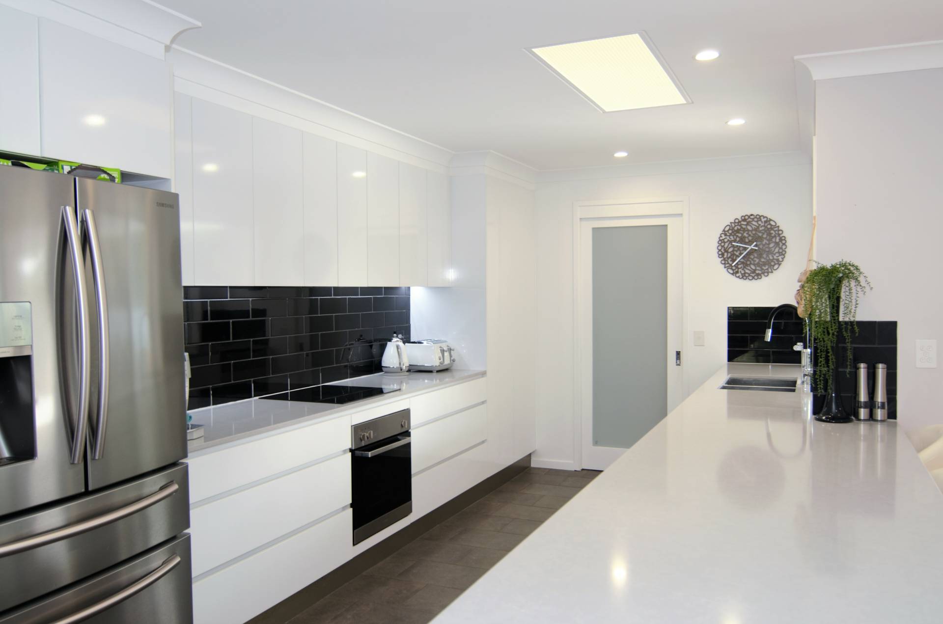 The kitchen with it huge work bench, stainless steel appliances and cupboards will have you reaching for MKR re-runs as your taste for finger food  becomes a thirst for fine dining so  you can  impress your guests.