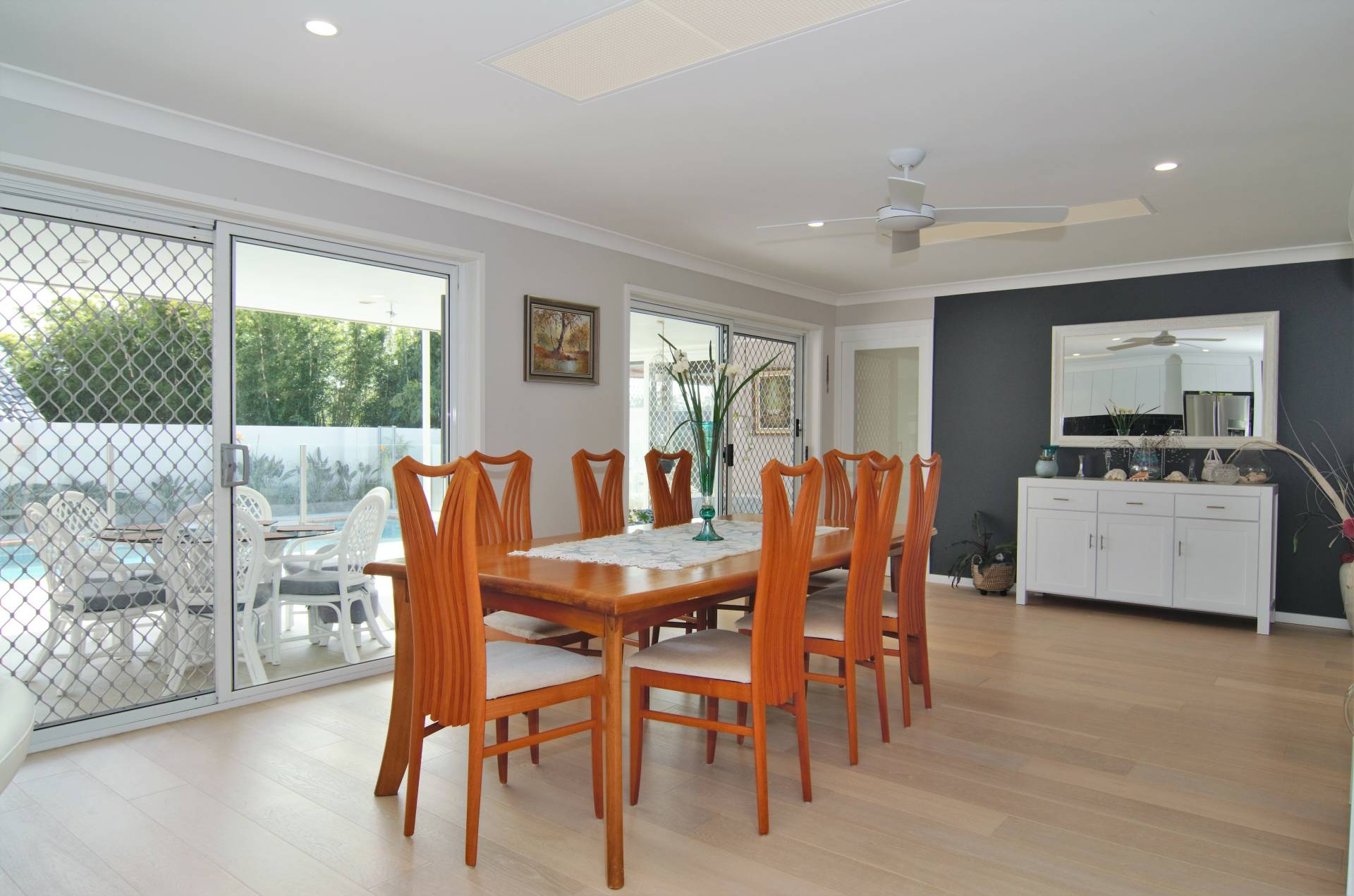 A separate dining room has now become the formal media  area as the spacious family room doubles as the eating area. But, wait , there's more ! In addition to the three double guest bedrooms all with ample wardrobes there is also a vey large fifth room which can be utilised as a separate entertainment/kids' room.