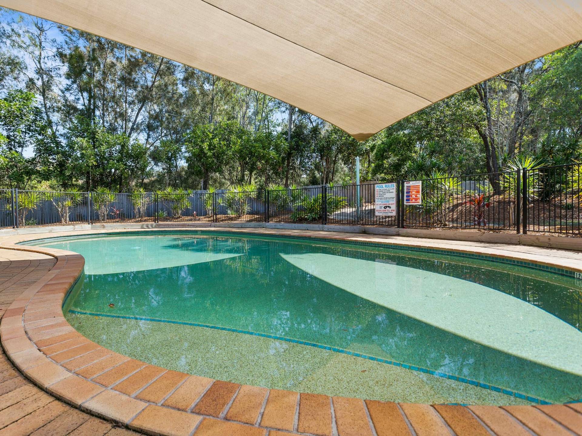 Fully renovated, three bedroom townhouse with beautiful 2 -way bathroom, plus downstairs powder  room.  Spacious living areas, fabulous kitchen with loads of cupboards and ample bench space.  Generous decked outdoor area with peaceful open space views. Complex offers two pools, tennis courts, security entrance gates and great on site management....all with a body corporate of well under $60 p/w.