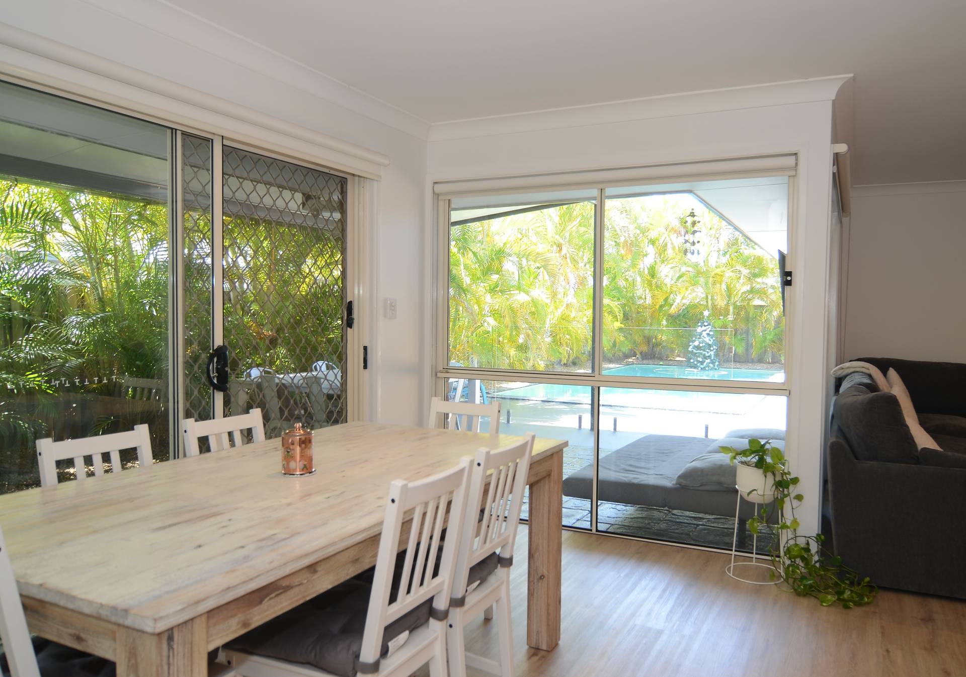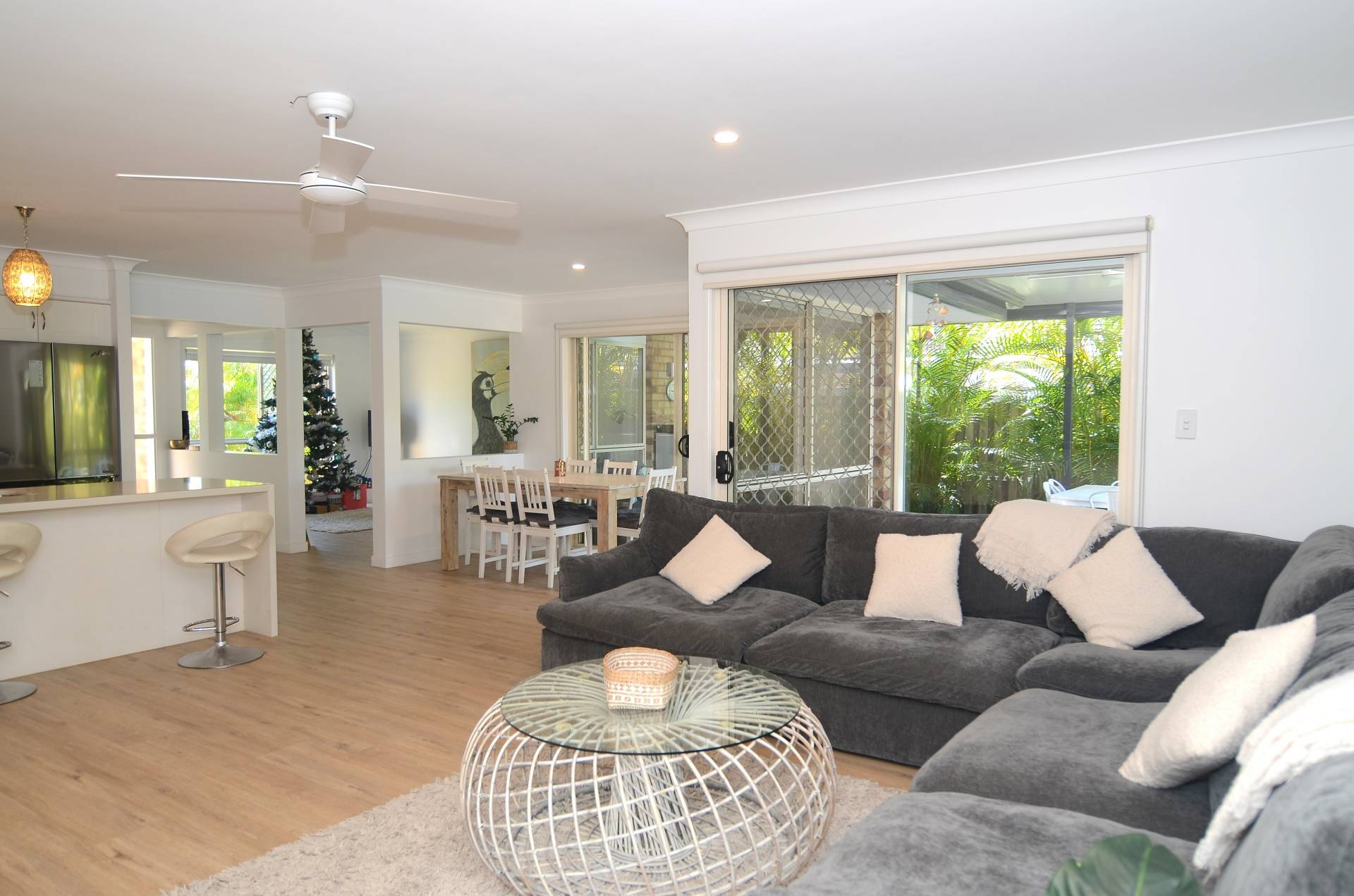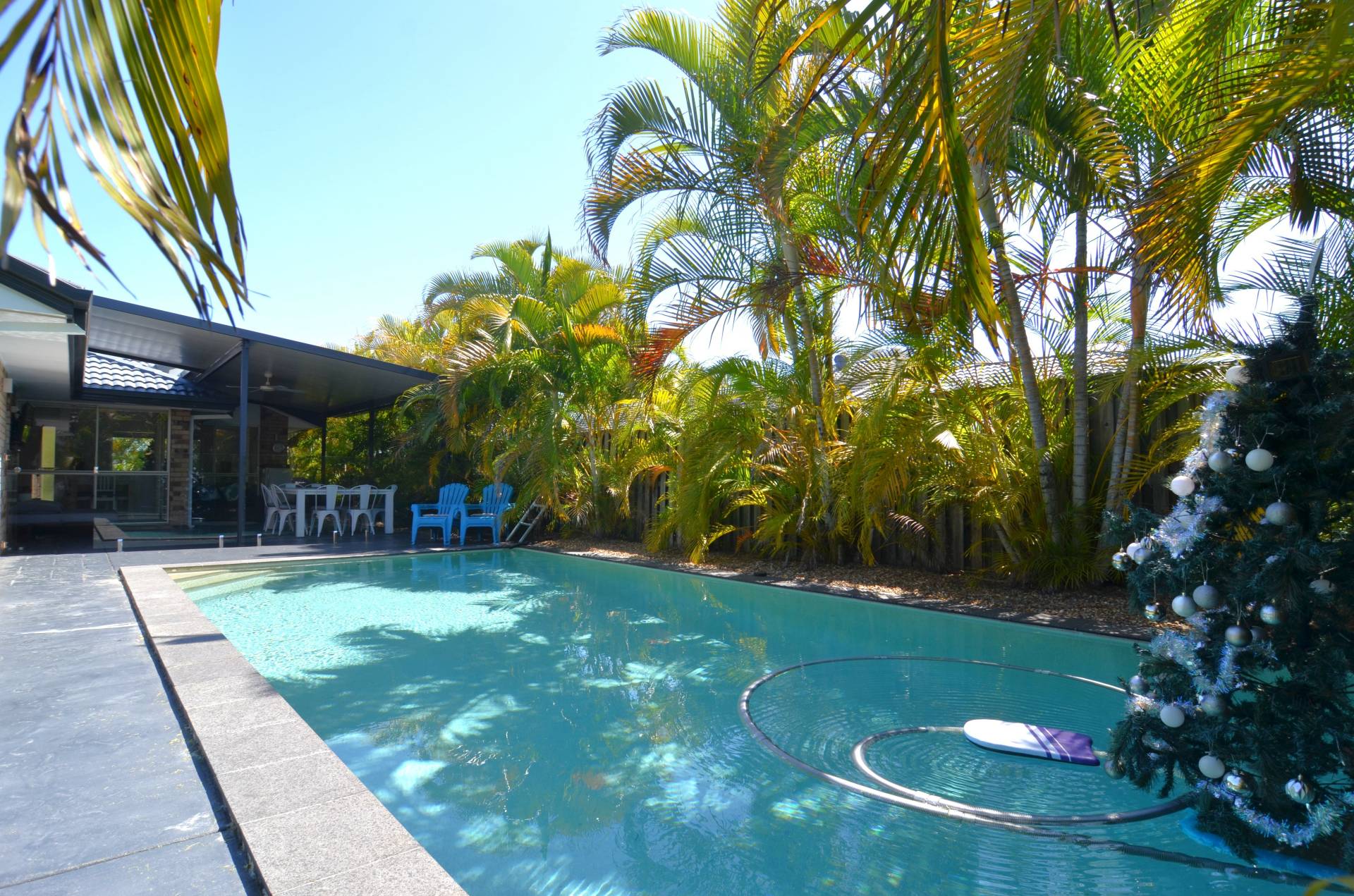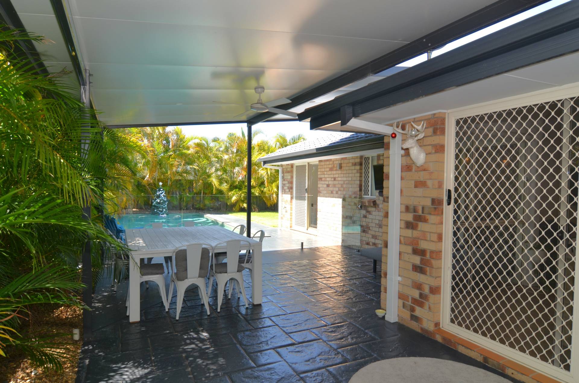 Terrible grammar - but what a great home.  On a fully fenced 670m2 block, with a extra large pool AND plenty of garden, the kids ( and grown ups too) are going to love this. Delightful open plan living with separate formal lounge, large dining area and a huge air-conditioned family room - all leading seamlessly to a generous under cover outdoor entertaining area from which you can watch the kids have the time of their lives. The kitchen offers loads of bench space and plenty of cupboards. The master bedroom , at the back of the home also has pool access and while the two guest rooms all take queen size beds with ample wardrobe space, there is in addition  a 4th study room. Both ensuite and main bathrooms are fully renovated and the timber look vinyl plank flooring is a modern enhancement of this delightful family home. The garage has been cleverly converted to an all purpose living/entertainment area - perfect for teenagers and friends. A double carport has been added providing safe and secure parking for two cars. Room on the side to store a boat or trailer. Some of the benefits include a 6.5kw solar system, fans in all rooms and additional air conditioning in the rumpus room. Realistic owner have priced this to sell - so delay will be your loss!